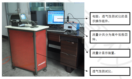 工作原理:當(dāng)試樣正反兩面達(dá)到規(guī)定的壓差時,測試單位時間內(nèi)垂直流過試樣一定面積的氣流流量。